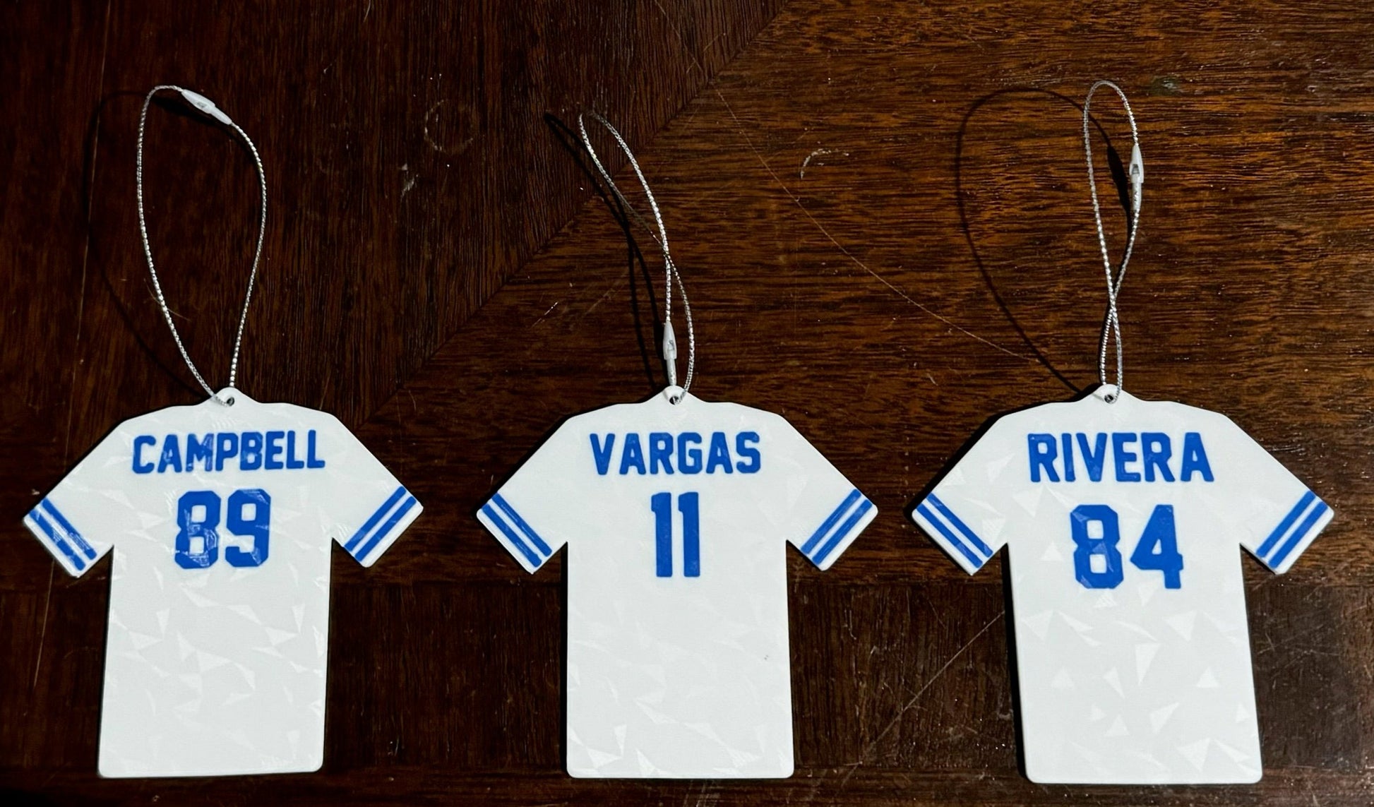 Each ornament is carefully printed with attention to detail, featuring a unique jersey design. Please allow 3-5 days for processing.
