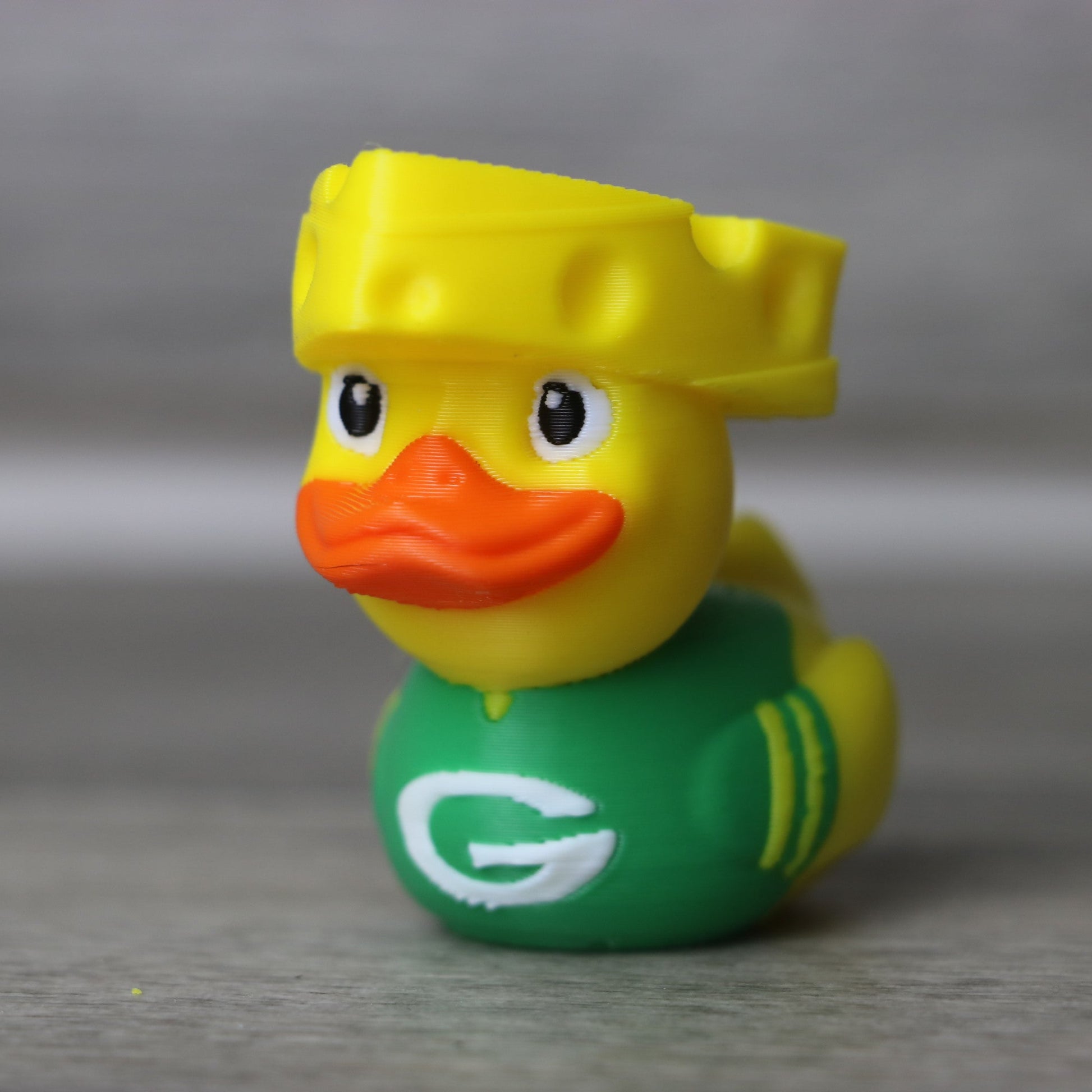 Decked out in a wedge of cheese and a green jersey, this 3D printed duck is a quirky tribute to your favorite football team. Whether you're tailgating, decorating your office, or gifting a fellow fan, this duck is guaranteed to bring a smile (and maybe a few jealous looks).